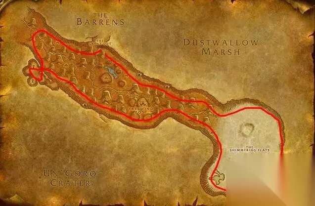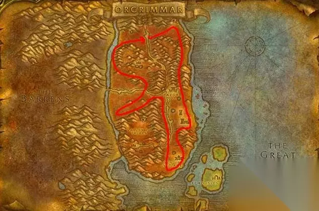 (贫瘠之地) (2)部落玩家建议走贫瘠之地,路线如上图所示。 3、铁矿(金矿)125-175