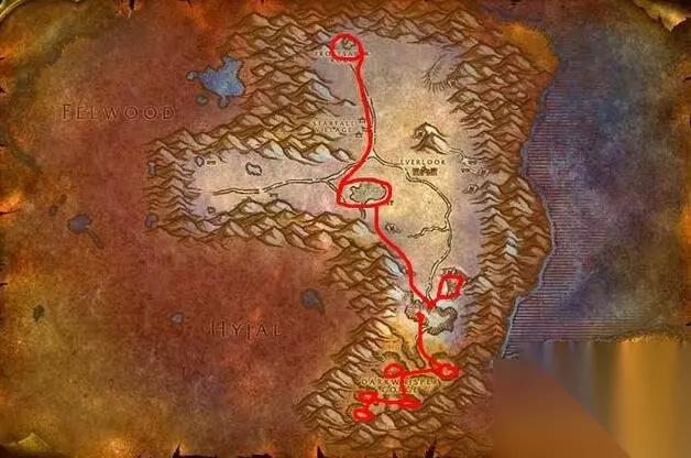 (阿拉希高地) (1)联盟玩家建议走阿拉希高地,路线如上图。