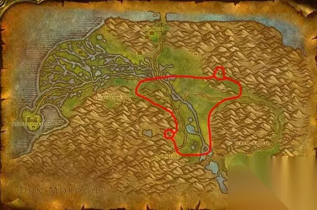 (杜隆塔尔) (2)部落杜隆塔尔离主城近,路线如上图所示。 2、锡矿 65-125