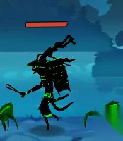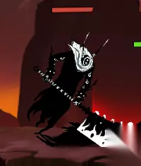 BOSS*傀儡一号 用来守护火柴人圣地的古老机器,但似乎里面的芯片已经收到魔王的侵蚀 【技能介绍】 对空激光:投射两个激光发射器到天上追踪玩家,短暂延迟后从天而降两道能造成持续伤害的激光 激光炮:短暂蓄力向身前发射一刀激光炮,玩家需要持续跳跃三次才能完全躲避 致命刀痕:傀儡一号瞬移到玩家身后,向玩家发起一剑气,玩家需要通过跳跃劈砍躲避 ----------------------------------------------------------------------------------- 【怪物介绍】