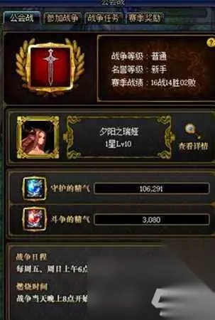 在界面中可以查看本公会的战绩、等级和守护神信息。