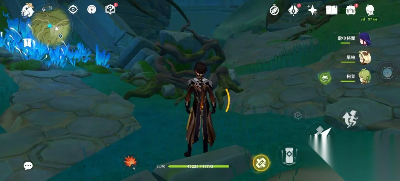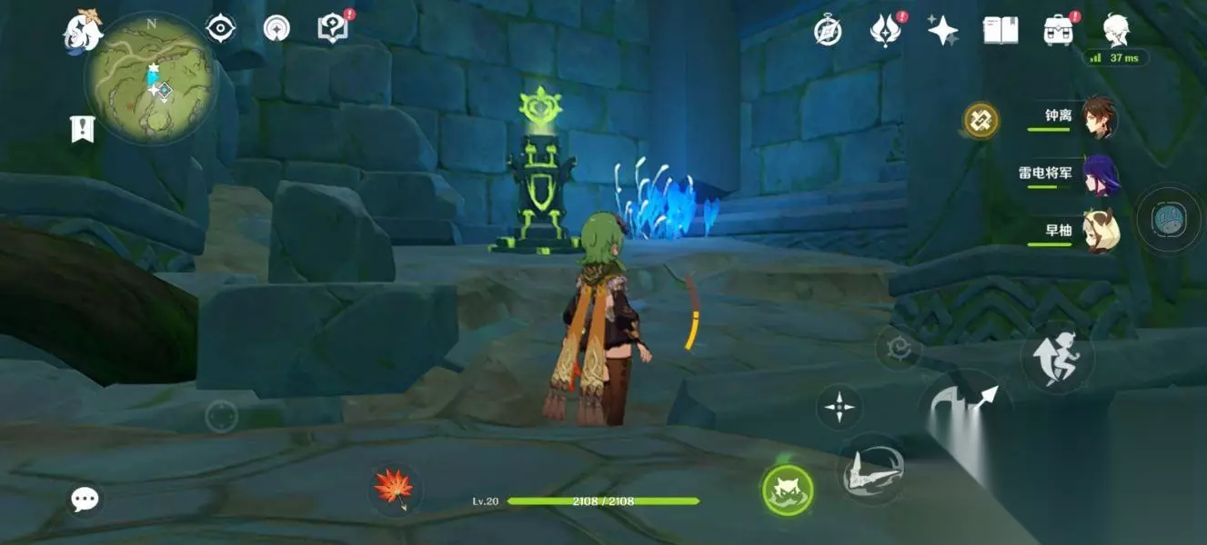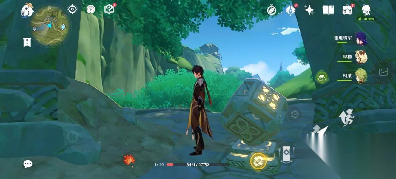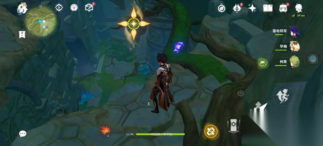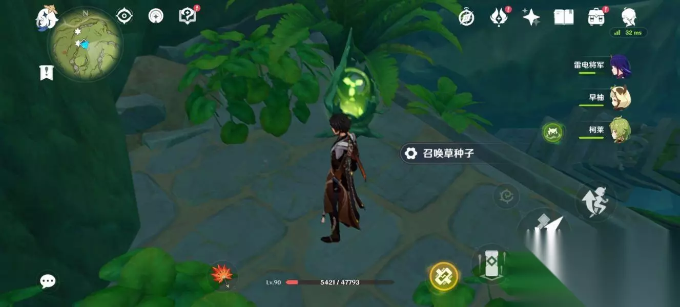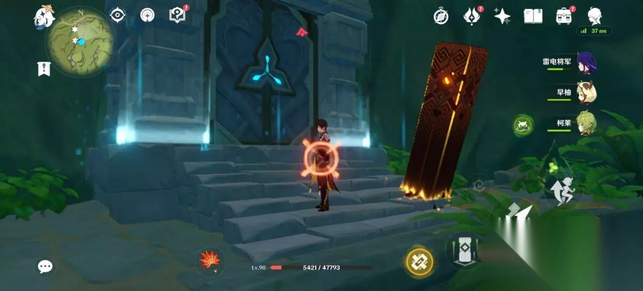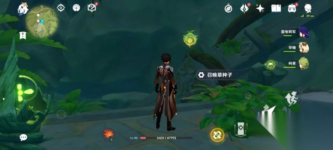 这个机关就会开启,将它激活激活后,往前冲。 来到这个位置会有一个草神瞳,拿完后继续往前走