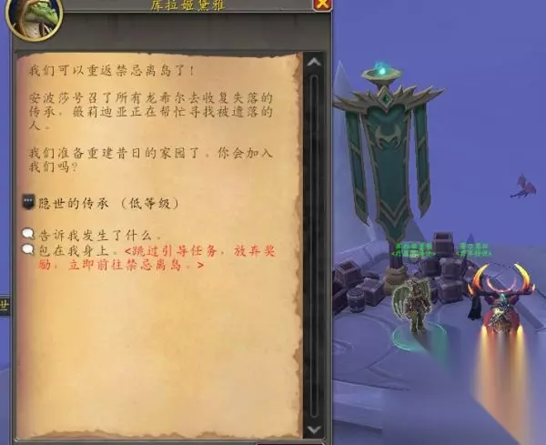 魔兽世界青苔猛犸象怎么获取 一、青苔猛犸象获取方法介绍 1、首先我们需要至少一个号做完解锁到离岛的任务,我们来到瓦德拉肯最顶端找到NPC:库拉姬黛雅,接到任务隐世的传承,如果是小号可以直接跳过。然后做到任务引导你去离岛。