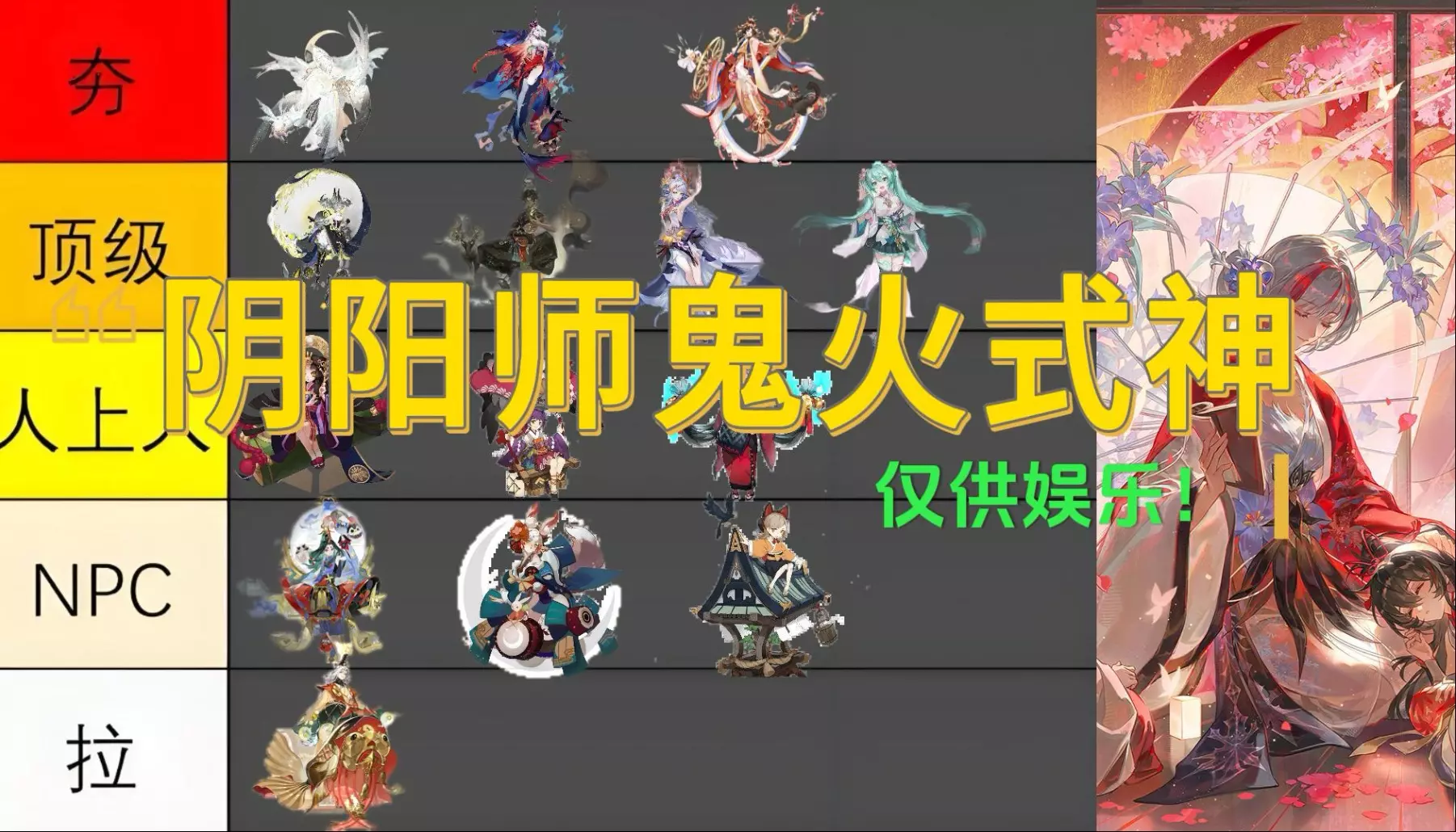 ※基于PVE和道馆,不包含斗技需求,不包含斗技需求,不包含斗技需求 ※SP式神:SP蛇、因幡、缚姬、SP缘、红叶、麓丸 ※SSR式神:天照、须佐、季、玉藻前、帝…