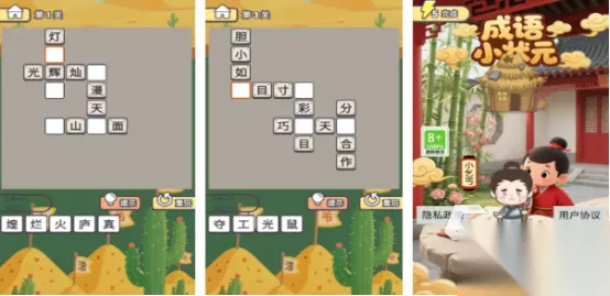现实生活中记单词是无比枯燥的,但在这款游戏的伴随之下会发现记单词也能充满无限乐趣。采用灵活多变的玩法,让你拥有更高的耐心以及耐力,同时也能激发个人的学习兴趣。在本身比较枯燥的模式之下享受无限欢乐,其中加入多种通关玩法,通过连接单词的方式成功通关并掌握,并掌握相应的发音与具体的拼写。 高速下载 普通下载 优先233乐园APP下载 5、《成语小状元》