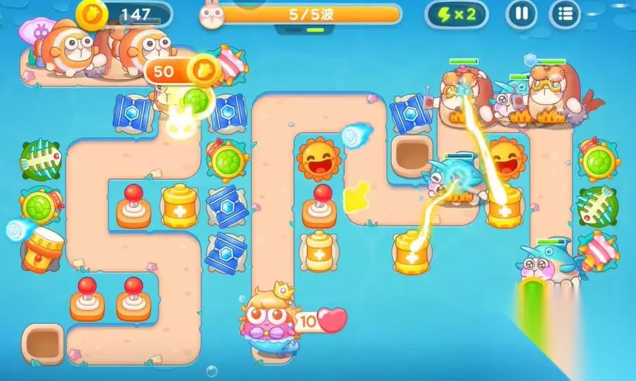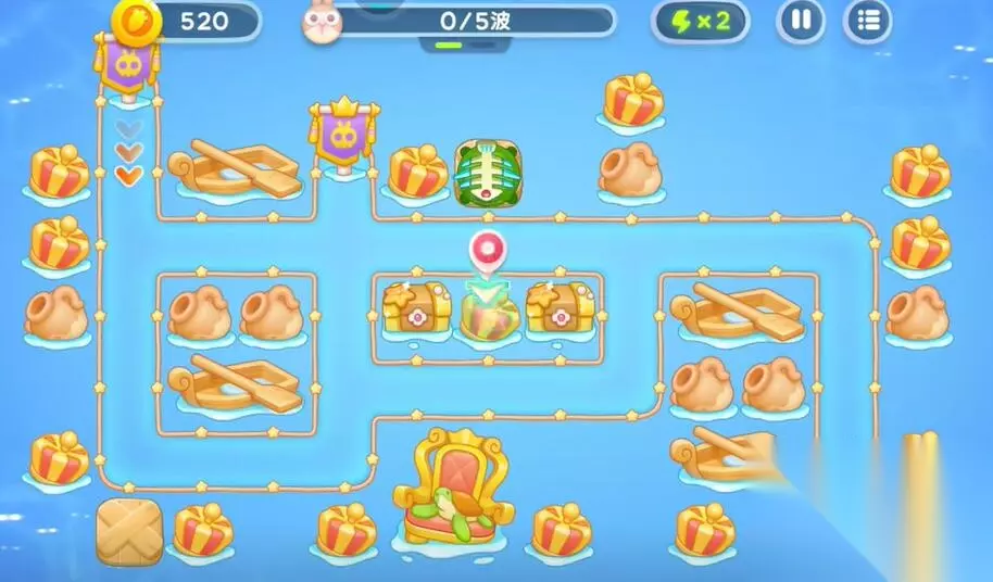 6、在两路的兔子都会走的路线上建造更多的防御塔,清理掉所有的兔子,即可完成本关的挑战。