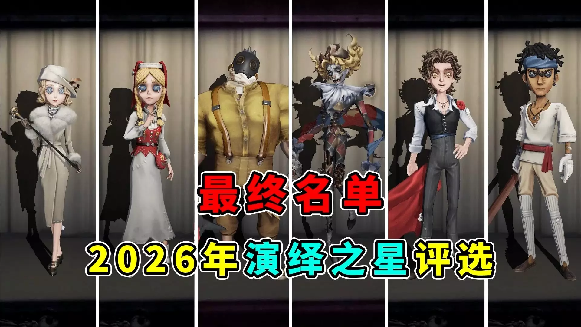 《第五人格》2026演绎之星双服最终评选名单出炉,监管者厂长、“喧嚣”,求生者玩具商、斗牛士、击球手、“法罗女士”成功当选,其中因双服斗牛士重复,最后一个名额顺延给“法罗女士”。