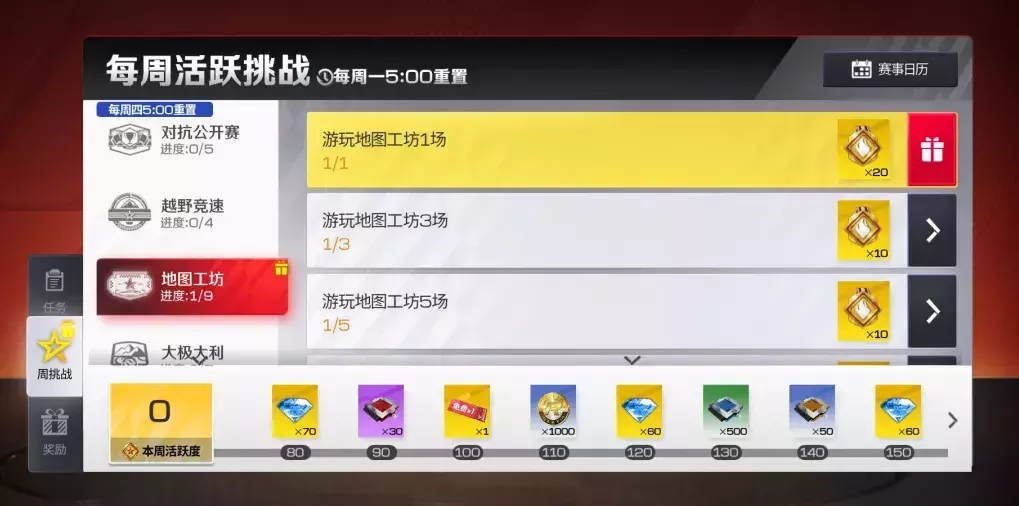 小可还有个福利要提醒大家别忘了领:每周参与地图工坊挑战,或是体验排位模式等其他玩法,都能计入每周活跃任务!完成的任务越多,拿到的奖励就越丰厚,钻石、限时免费抽奖券等奖励轻松领~