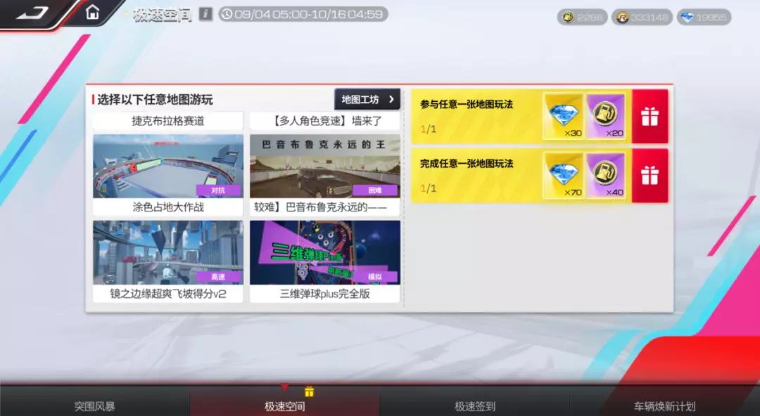 你说钻石不够多?不用担心!【极速空间】将定期更新多张地图工坊玩法地图,游玩地图就能实现奖励领不停;