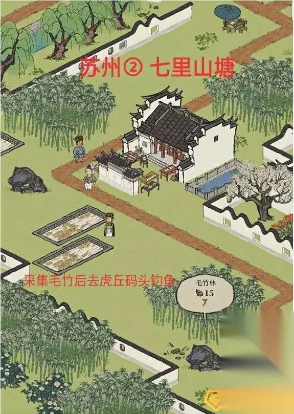 七狸山塘 需要消耗35的体力,先采集毛竹,然后去虎丘码头。
