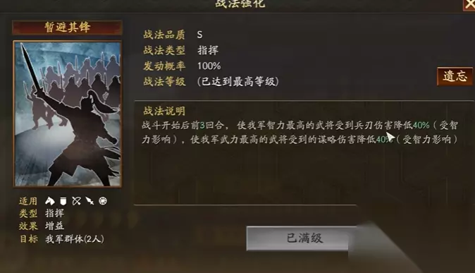 刘备作为主将,标配战法为陷阵营与暂避其锋。陷阵营提供全体武力、统率加成及急救效果,暂避其锋在前三回合为智力最高的武将减免谋略伤害、为武力最高的武将减免兵刃伤害,完美保护张飞生存。若缺少陷阵营,可替换为虎卫军或御敌屏障,但会损失部分治疗能力。刘备兵书通常选择援其必攻+励军+掩虚,全智力加点确保治疗量,速度需慢于关羽以优化技能释放顺序。