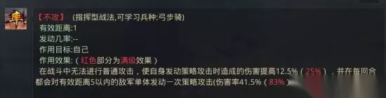 4.黄月英带【不攻】,【不攻】能增加【匠心不竭】伤害吗? 不能。武将的同类战法,释放顺序是从上到下,同为指挥战法的【不攻】释放在【匠心不竭】之后,不会增加【匠心不竭】的伤害。 5.黄月英带【远攻奇略】,能增加【匠心不竭】伤害吗? 能。【远攻奇略】是被动战法,在指挥战法释放之前,就已经释放并生效。