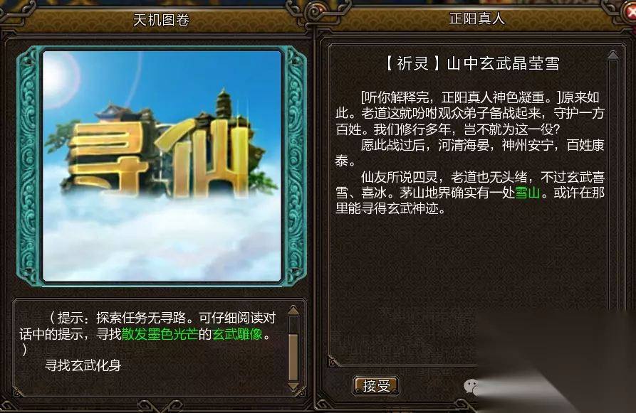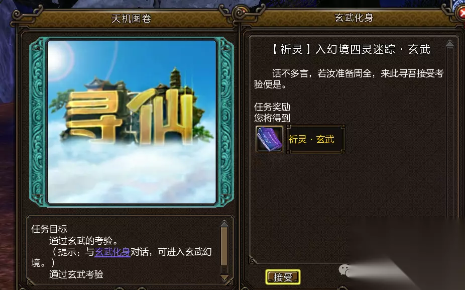 玄武任务: 玄武 武侠, 角色扮演, 动作 查看更多 立即下载 前往五宁宫,对正阳真人使用仙派召集令接取任务山中玄武晶莹雪,找到玄武化身坐标(2503,2137)入幻境完成挑战。 利用大水晶迅速攻击叠加状态,水晶释放能量冲击时防御即可,叠满5层释放大招洛泽玄冰,如此往复即可击败玄武化身。