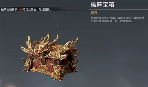 永劫无间破阵宝箱内容 首先破阵宝箱中应该有【长枪的红皮】,破阵更符合长枪这把武器的定位。角色红皮应该是【岳山】的,只有他的技能最契合破阵。(PS:破阵宝箱要等赛季开启后的32天,才能知道具体奖励内容,目前估计连模型都没建好,应该和浪潮宝箱一样就是出各个武器和角色的新皮肤。) 红色(神品):0.6% 金色(极品):7.6% 紫色(优品):91.8% 保底机制为每开启一百个破阵宝箱,就必定会获得一件红色品质的奖励,也就是岳山红皮或者长枪红皮。 总而言之,破阵宝箱最值钱的就是长枪红皮和岳山红皮,具体能开出啥要等到12月13日,S2聚宝阁开启后才能知道。 永劫无间破阵宝箱有什么就介绍到这里,如果对您有所帮助,不妨转发给其他需要的玩家,更多相关攻略正在添加中。