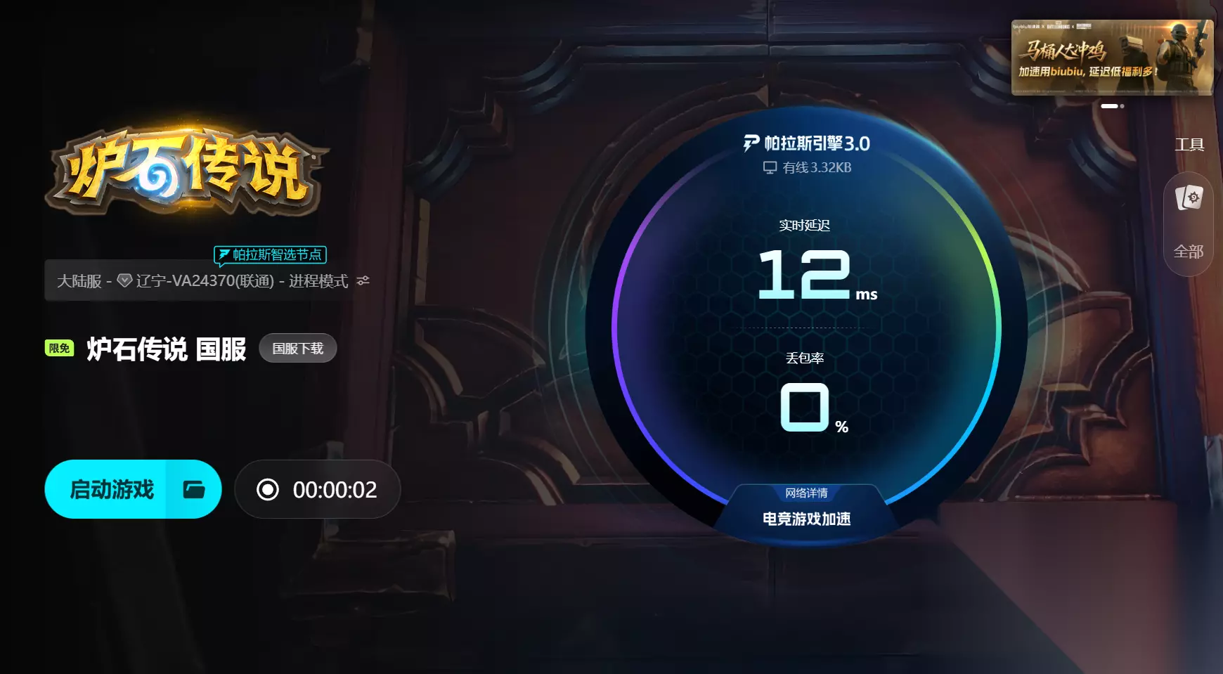【biubiu加速器】最新版下载 点击下载 《炉石传说》作为一款高度依赖策略思考的卡牌对战游戏,操作容错率极低,任何一次网络延迟都可能造成不可逆的影响。你的每一个决策都基于费用分配、手牌结构和场面判断,而一旦出现连接中断,系统可能直接跳过你的回合,导致前期积累的优势瞬间瓦解。数据在传输过程中若经过冗长或不稳定的路由节点,指令就会滞后甚至丢失,而对方却能正常执行操作,形成事实上的不公平对抗。更令人沮丧的是,所有为连击所做的铺垫——过牌、减费、资源调度——都会因一次掉线化为乌有。想要避免这种被动局面,就必须建立一条高效稳定的数据通道,确保每一次出牌都能准确无误地送达服务器。