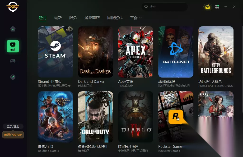 3、野豹游戏加速器 pc端的游戏和主机游戏全能使用这个加速器来加速,一键精准就能智能加速,特别是对战网游戏平台当中的各大游戏,让你在体验过程中减少那些加载缓慢和卡顿等现象的出现,全运营监控,游戏库及时更新。