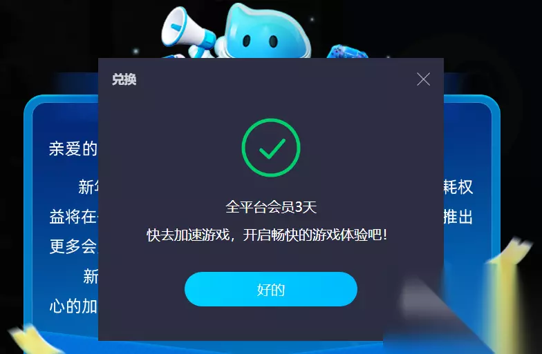 特别是对新用户有免费24小时时长体验活动,让大家直接体验平台的加速服务,根据当前你所在位置智能选择最佳网络连接,还听说有专用兑换码的活动让大家获得三天免费时长体验,用小写的方式输入兑换码【biubiu不卡顿】就可以领取,数量有限,先到先得。