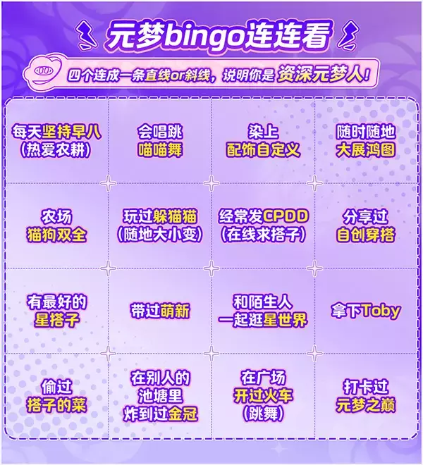 谁懂啊?是不是给我装监控了,星妹怎么可以做到每一条都中!!快来体验下图的bingo游戏吧!看看你究竟达成了几条“隐藏成就”!
