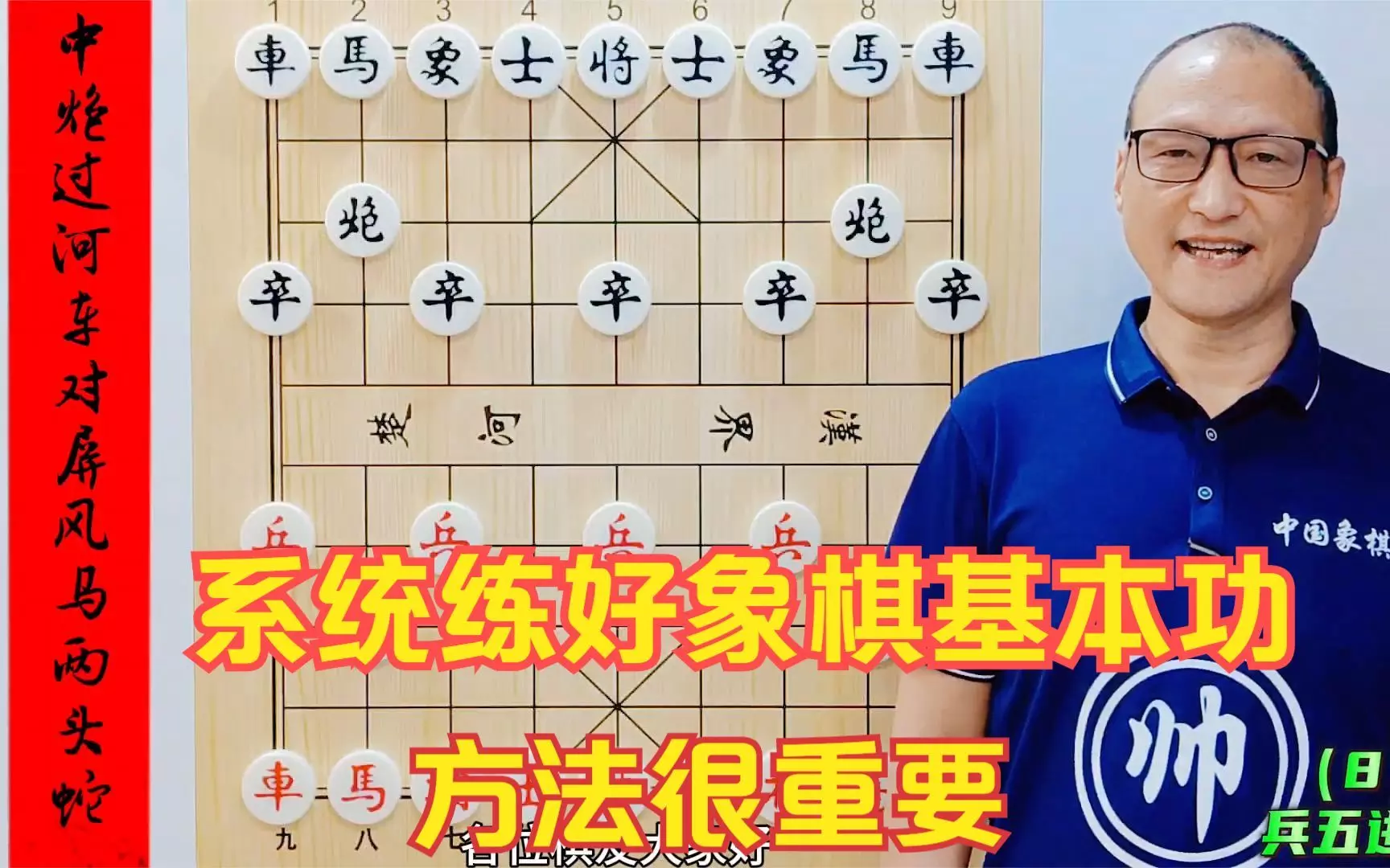 这是象棋教学第16局,讲解中炮盘头马布局,强调学象棋要稳扎稳打,夯实基本功,掌握象棋精髓,帮助象棋爱好者提升基础能力。