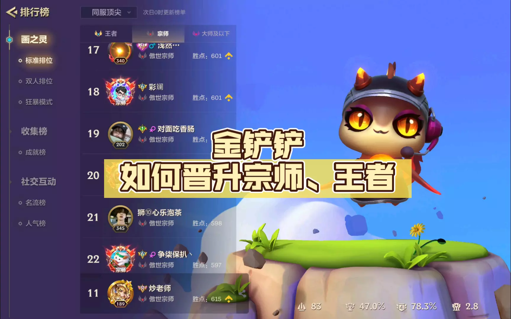 这是金铲铲之战的上分攻略,分享了6祖安阵容的前中后期英雄搭配,该阵容强度可观,使用它一天上五百分,目前已达王者段位,助力玩家快速冲分。