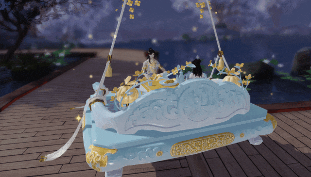 使用道具九霄摘星,可以让水陆两用的坐骑·冰轮桂梦化身空中坐骑,所过之处月华铺路,桂香缭绕,仿佛携满袖秋风,直赴银河之宴。