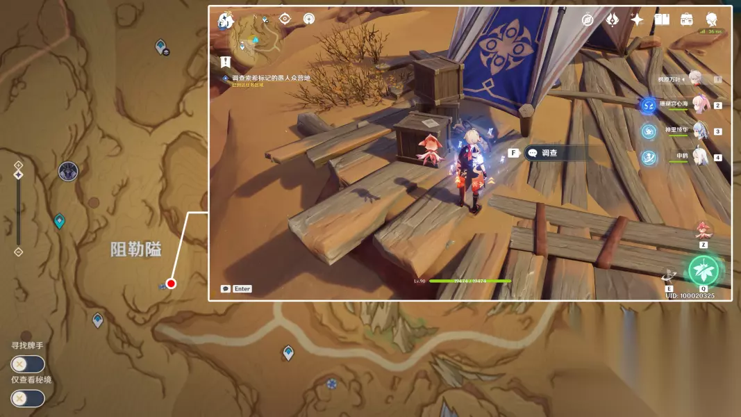 3 继续调查下一个愚人众营地 接下来前往荼泥黑渊南边的愚人众营地,同样还是先击败驻扎在这里的愚人众。之后可以看到图示位置的营帐旁有一堆行李,上面有闪光点,我们调查一下这里即可。