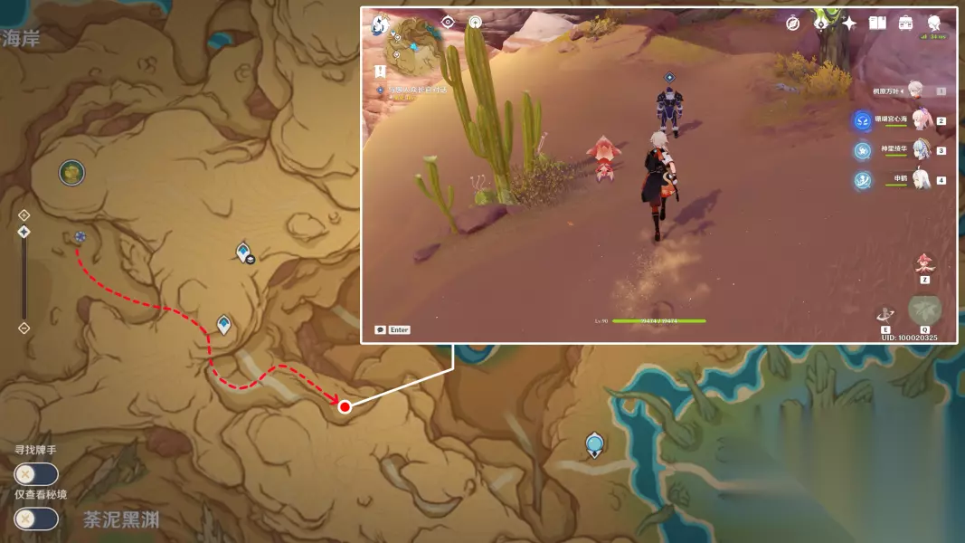 跟着三角形标记的整体移动路线大致如下图所示,途中会遇到一波挡路的愚人众,全部击败后继续走即可。最后走到图示位置就能看到一个愚人众站在路中央,靠近后即可自动触发剧情。剧情结束后,击败愚人众马尔科佐夫即可。