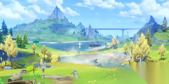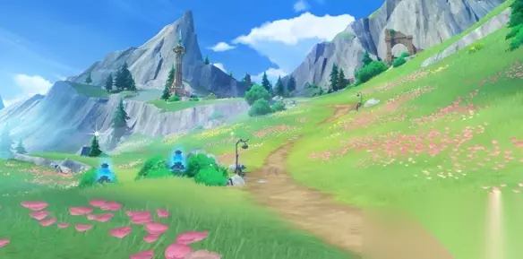 1、击败这里的丘丘人后解锁机关,同时会出现断断续续的空中楼梯,走上去收集元素颗粒。每到断开的路前,使用弓箭瞄准攻击一下最底下的机关即可变化道路。收集齐颗粒后即可获得宝箱。
