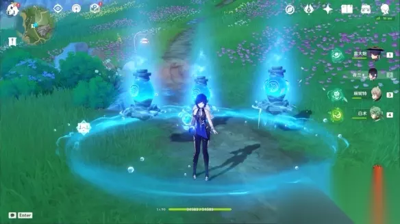 1、先收集齐三个小水珠形成水之核后将它放在空余的台座上,然后重新收集小水珠,再次形成水环后激活所有机关。