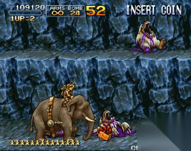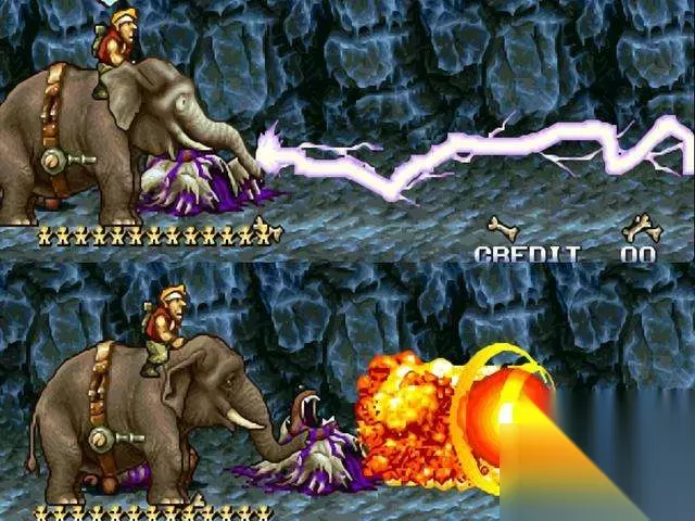 《合金弹头3》中出现的大象炸弹,拥有两种不同的炸弹。就看大象在途中吃到的是电池还是辣椒。吃到电池就能打出电击效果,而吃到辣椒就能打出火焰效果。 丧尸的血量一般都是比较厚的,但是大象的炸弹可以非常轻松将它们秒杀。