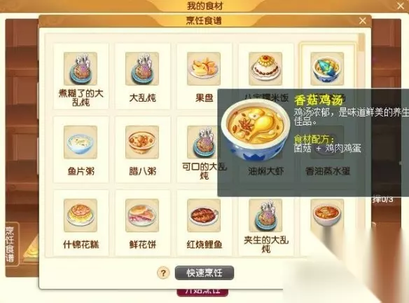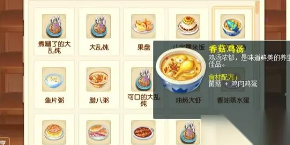 【梦幻西游2025新春活动攻略】 梦幻西游春节活动烹饪食谱2025 1、香菇鸡汤 食材:菌菇+鸡肉鸡蛋