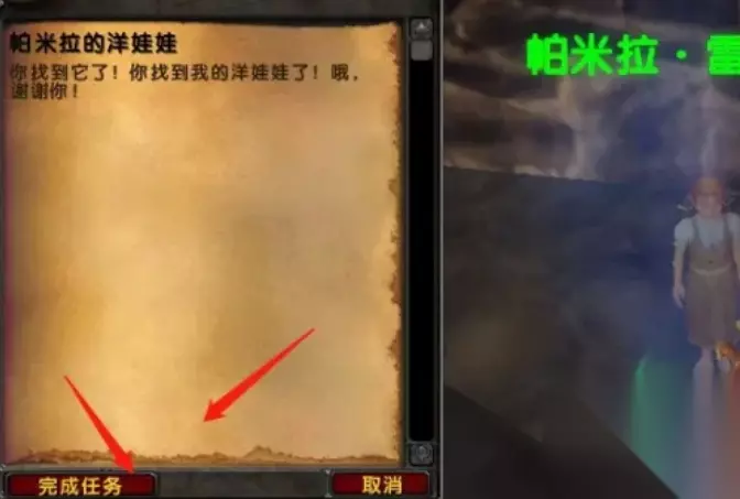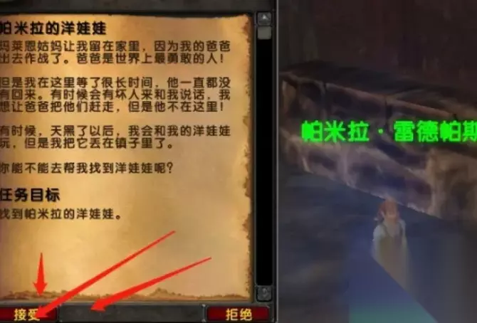 2、找到NPC帕米拉·雷德帕斯,接下帕米拉的洋娃娃任务,如下所示: