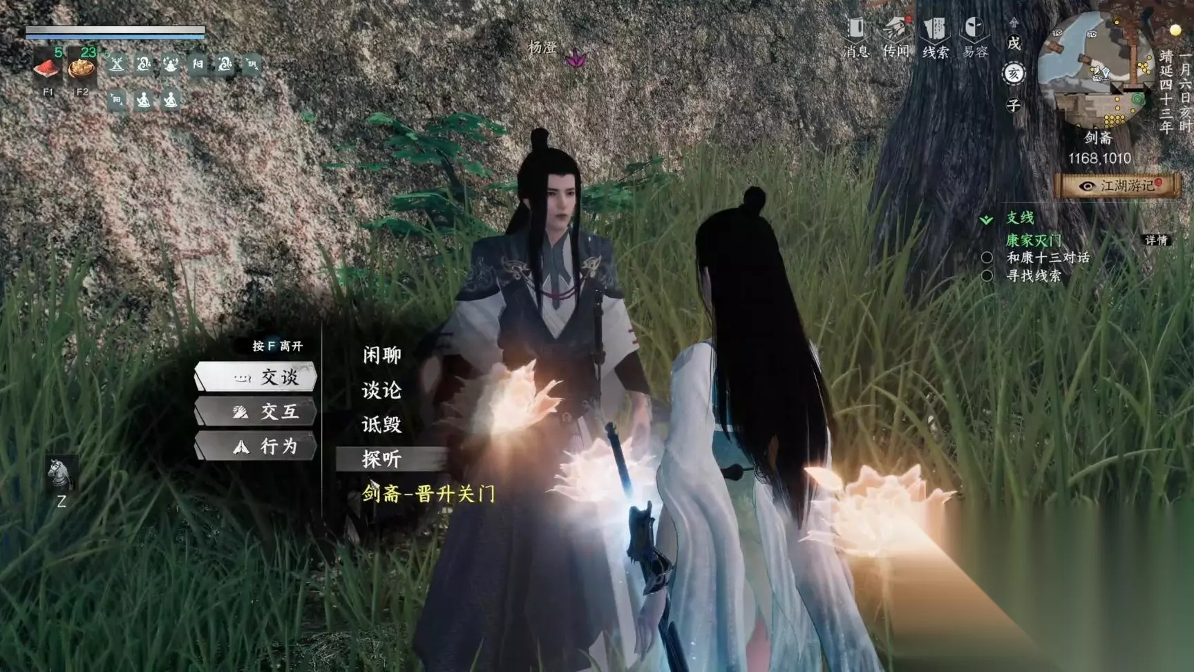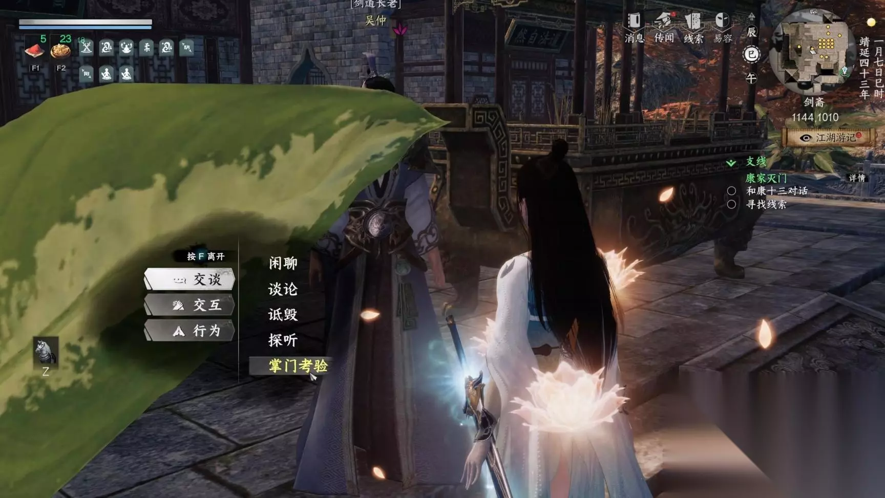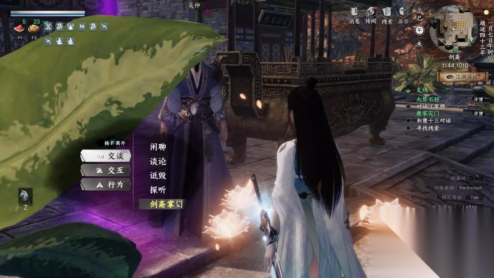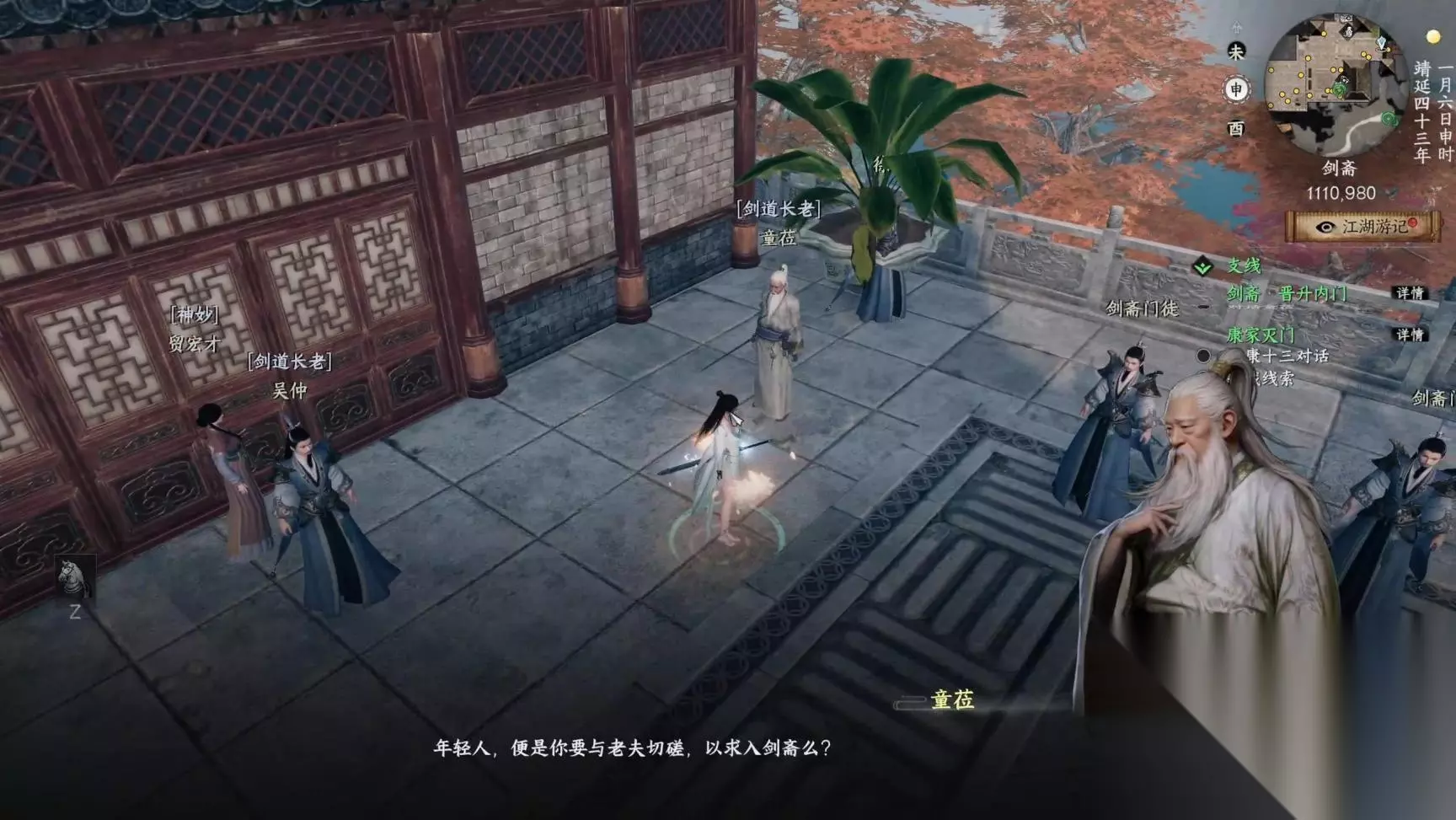 对话完,往左边走一下触发路德茗对话,过完对话后就成为剑斋掌门了