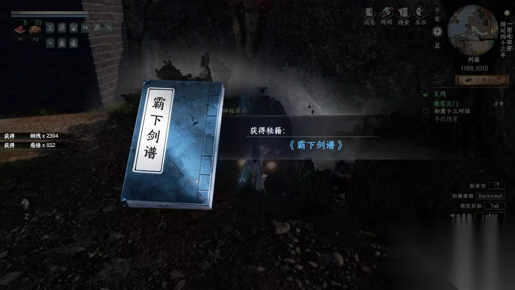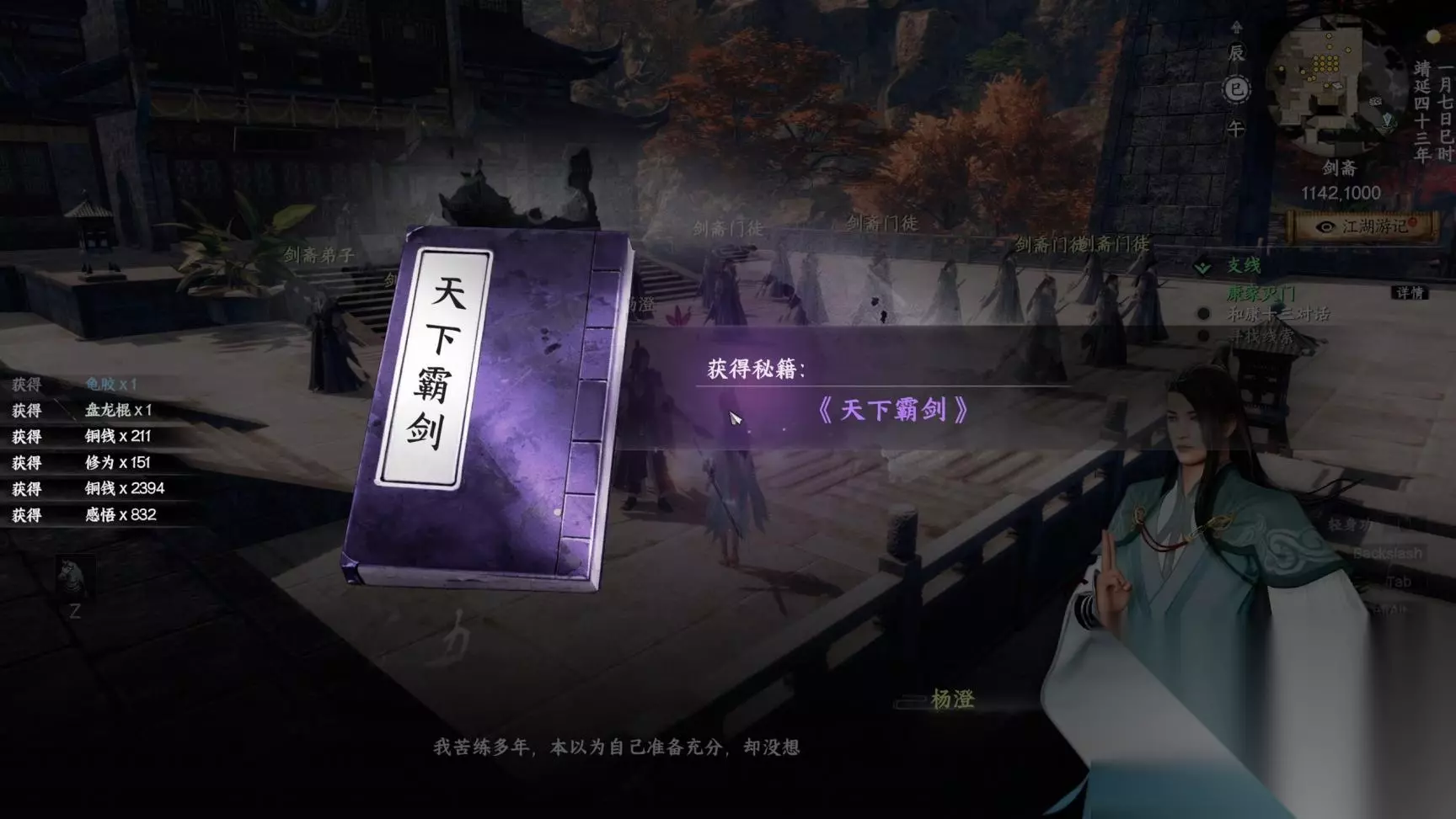 完成关门晋升任务获得霸下剑谱