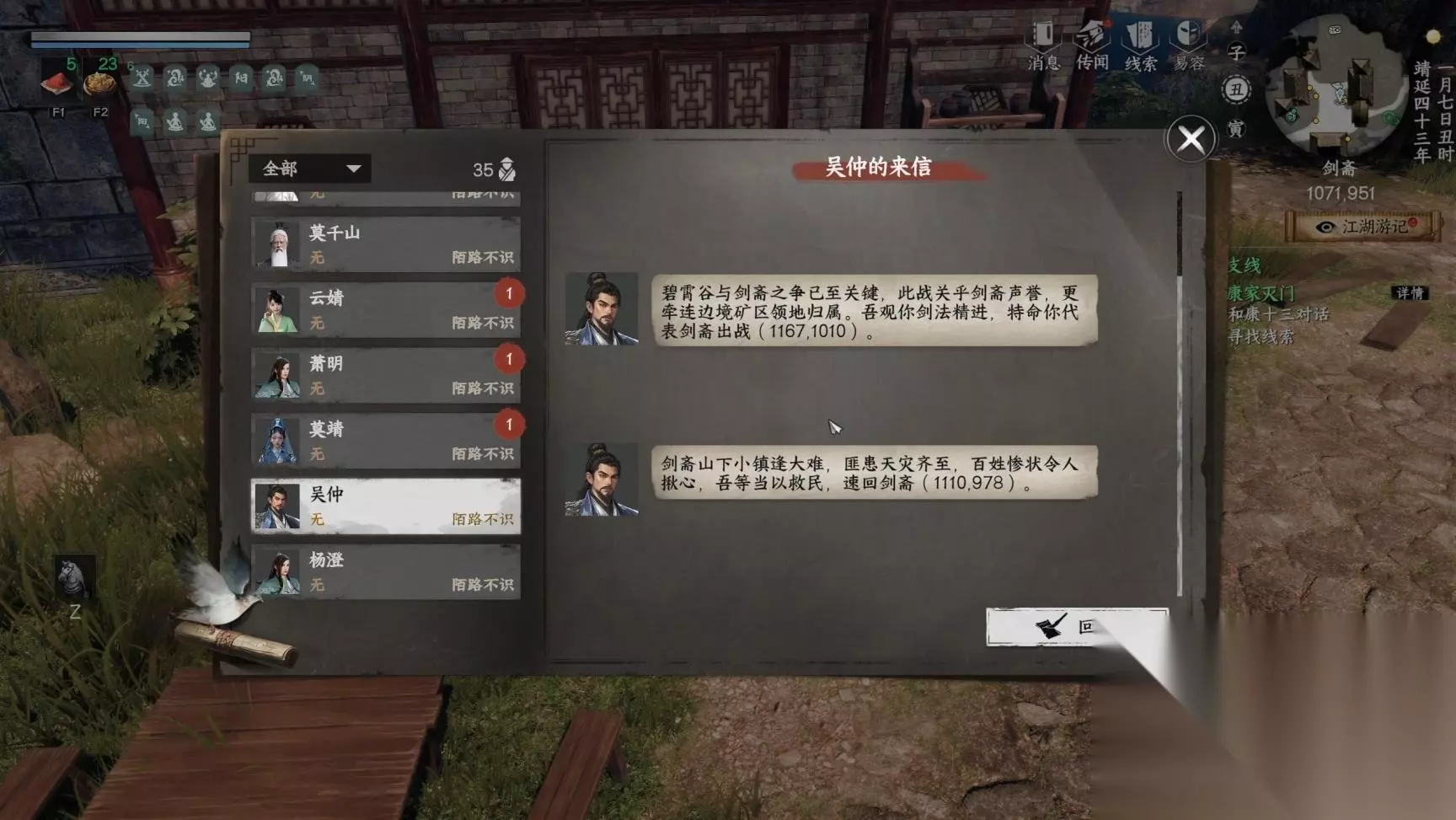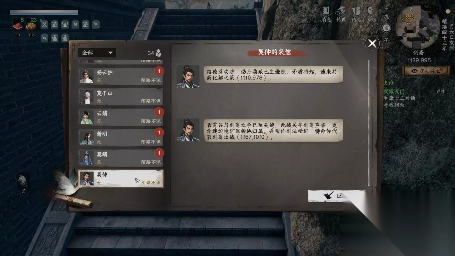 之后还要对话吴仲“剑斋掌门 ”