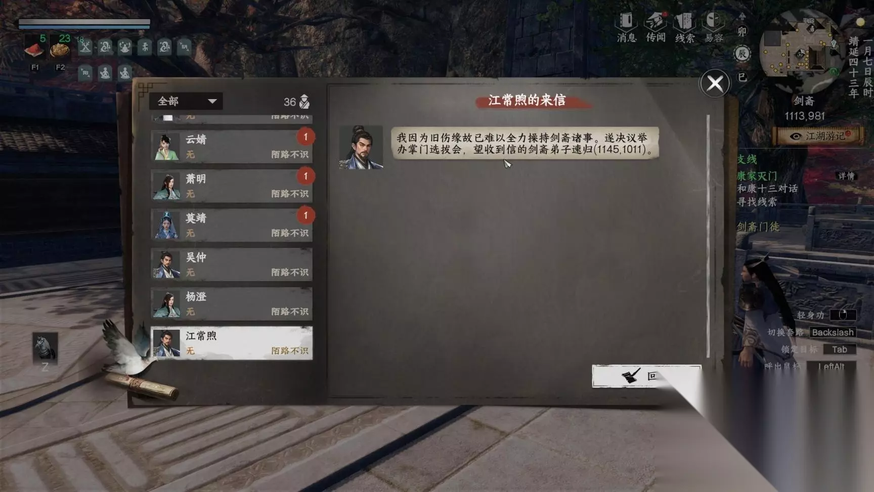 之后看飞鸽,吴仲发了个坐标,其实就在旁边。后面的晋升也一样,看飞鸽,去飞鸽的坐标 接任务,完成任务就能晋升。
