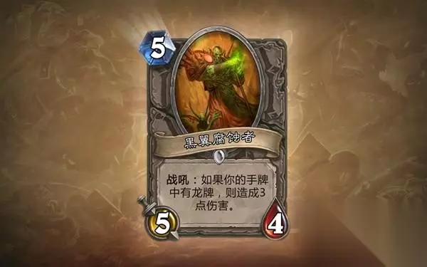 告诉大家一个秘密:我非常喜欢兽人术士,特别是穿T5腐蚀者套装的。所以只看这张卡牌的原画,我就爱上了开它。然而者却并不是一张术士职业卡牌。黑翼腐蚀者可以算得上是一个小号(从法力消耗和属性上看)的火元素,而且触发战吼需要一定的条件,无论是任何职业肯定都非常希望拿到这张卡牌。 黑翼腐蚀者是本周首先曝光的两张卡牌之一,也就是说这会导致他处于一个比较尴尬的境地,因为黑石山的火焰中还有很多其他的龙类卡牌并没有曝光,所以我们无法得知它们配合的效果如何。不过这几天又有三张新卡牌被公布,而它们全部都是龙类。因此我对于这些依赖于龙类的卡牌更多了一分信心。从法力消耗的角度考虑,5/4的属性还不错,但是这个兽人最重要的部分是它的战吼效果。不过我一直很担心对手能够轻松的解决这个四费血量的生物(横扫,真银圣剑,载人收割机就说这几个现在比较热门的),但是如果我能够在使用他的同时造成三点伤害,那么我很乐意冒这个风险。 很多黑石山中的卡牌在竞技场中似乎比较尴尬,黑翼腐蚀者也并不特殊。如果你在竞技场中运气够好拿到了足够多的龙类卡牌,那么我们可以在后期选择黑翼腐蚀者,这种情况下他基本是必选的。但是更通常的情况中,竞技场里是不会让你拿到很多龙类卡牌的,因此他的战吼效果就很难发挥出优势,同时竞技场中法师的受欢迎度以及他们的烈焰风暴会使得黑翼腐蚀者并没有那么优秀。