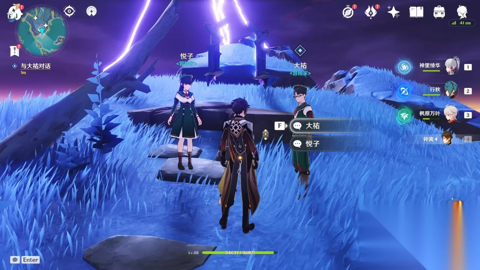 《原神》清籁逐雷记其三攻略介绍 寻找镇石 1、来到任务提示的地点,与大祐对话完后,穿越上方的「相位之门」