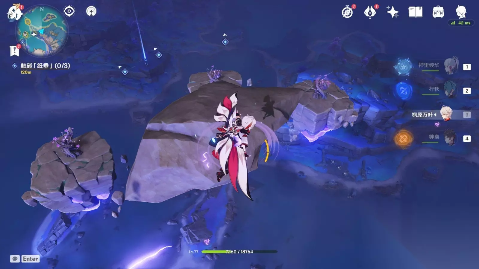飞上来之后,拿任意一个雷种子都可以飞上去镇石的地方,左右两边雷种子的飞行途中能见到纸垂
