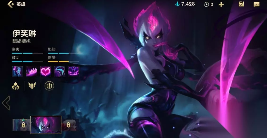 伊芙琳是机动性较强的爆发刺客英雄,在脱离战斗四秒钟过后,就会被恶魔的魅影所附身。要是她的生命值低于五百九十点,便能在技能激活的时候快速回复生命值,并不是永久的回…