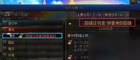 2、接着,在菜单中选择“事件”,并接受“逐渐消逝的裂隙”这一任务。