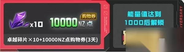 如果能量达到了1000,还能直接领取10个卓越碎片和10000NZ点购物券(3天)!