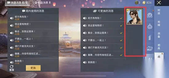 3、在战备中往下拉就可以在右侧看到一个【语音图标】;