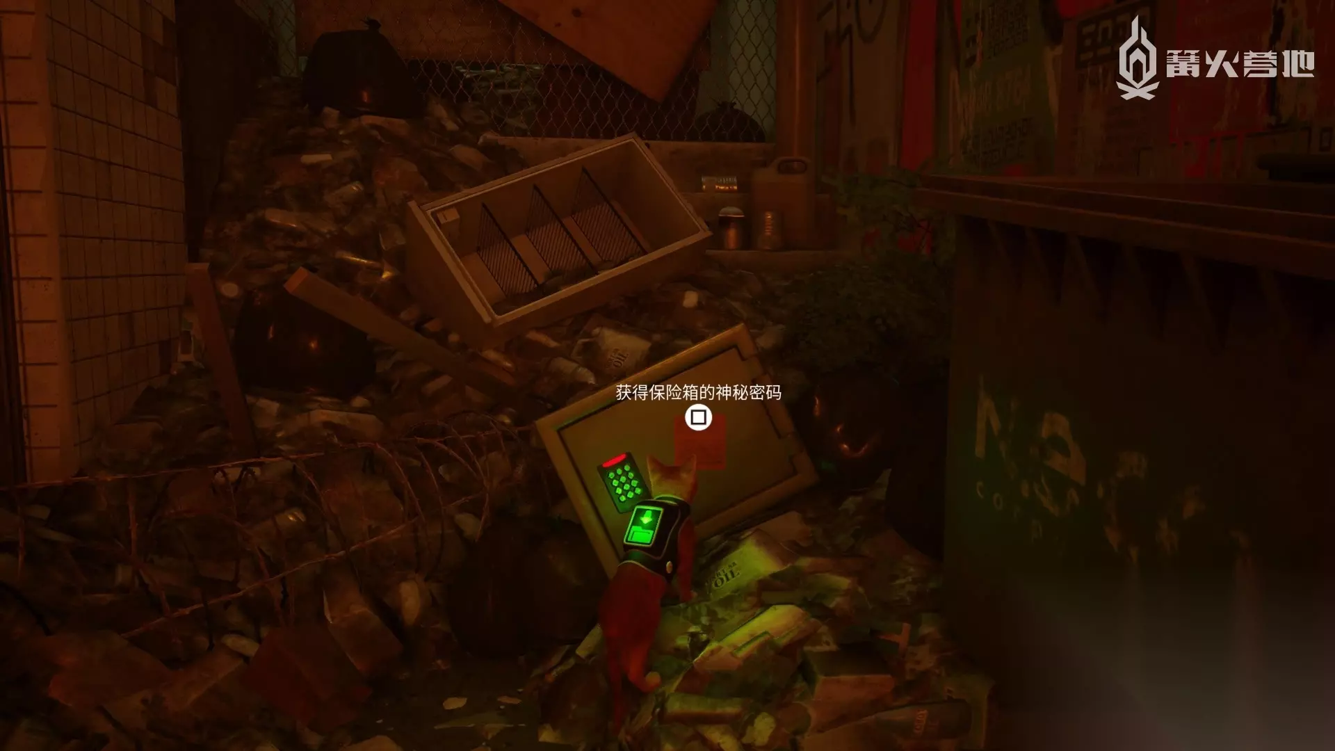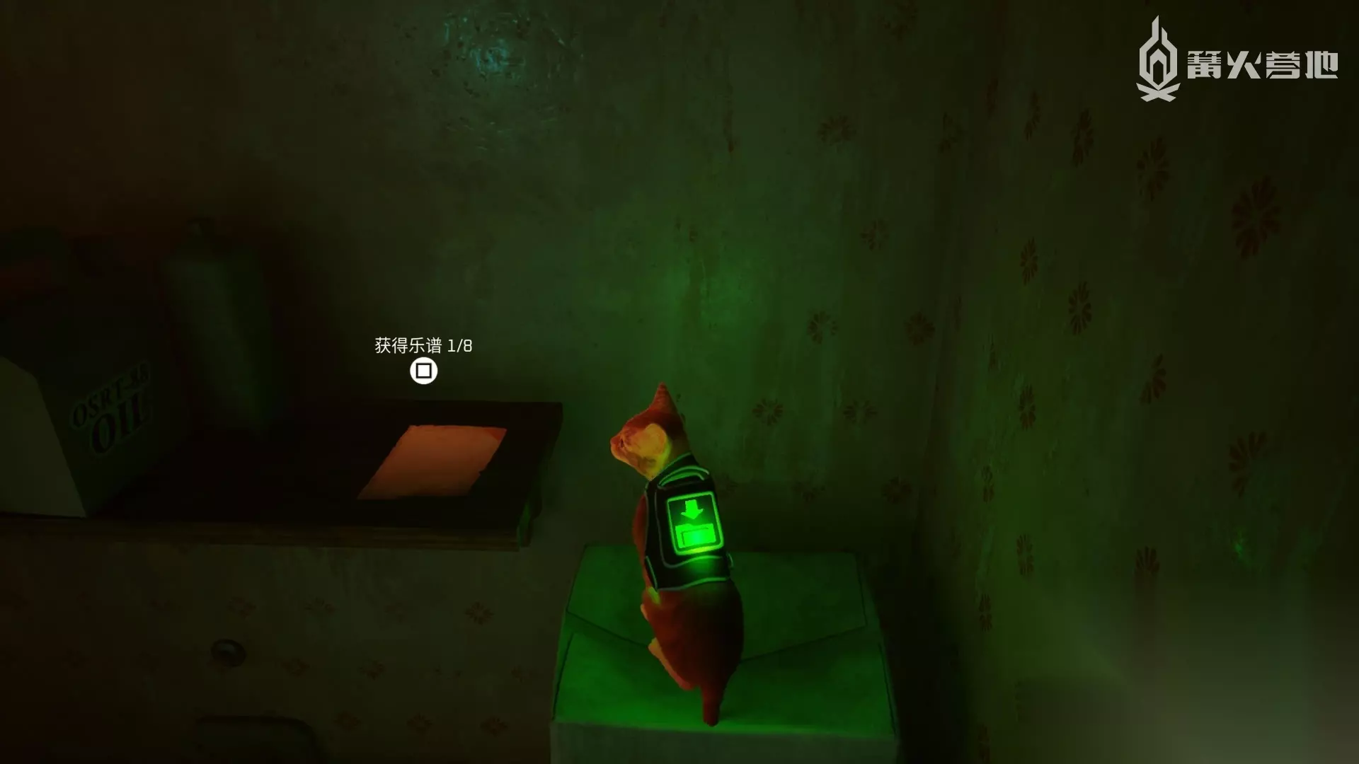 乐谱 8/8 正对音乐家往右走到尽头,左边的垃圾堆中有个保险箱,上面的文字写着二进制代码,去 Eilot 家找 Eilot 破解后得知密码在酒吧,去酒吧的吧台拨下 DUFER BAR 霓虹灯上面的挂画,得知密码为「1283」,打开保险箱可获得乐谱。