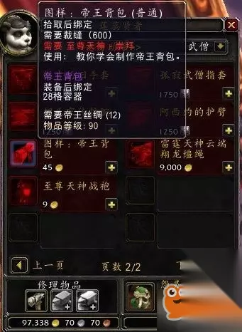 第十九步 跟宗师级的裁缝训练师学宗师级裁缝(都在外域的地域火半岛上-联盟的在荣誉堡二楼~部落的在萨尔玛) 提升裁缝到大师级(300-375)需要: 50级 (啊。你说你去不了。人家1级都过得去-SS拉贝要不就熬过58级) 第二十步 跟宗师级的裁缝训练师学灵纹布卷。需要制造190张 材料:1140张灵纹布 技能:300 - 325 第二十一步 跟沙塔纳城的伊恩(就在占星银行楼下走过点)学魔化灵纹布卷。需要制造50件(洗多无所谓。以后做东西都要这布) 材料:150张灵纹布卷 100个奥法之尘 技能:325 - 340 第二十二步 跟沙塔纳城的伊恩学魔化灵纹布包。需要制造5-10件(因为这个卖银行有人要。做多几个又可以练技能) 材料:20-40张魔化灵纹布卷 10-20个灵网蜘蛛丝 5-10个强效位面精华 技能:340 - 345