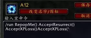 不是很确定你们能不能直接复制,我发出来你们试试:/run RepopMe() AcceptResurrect() AcceptXPLoss()AcceptXPLoss() 注意前后不要留空格,中间没有回车。 按照我上面说的办法,找一个没人的地方,小号脱光装备弄好宏命令就可以愉快的刷染血铸币了。