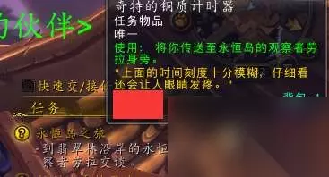 使用上图的铜制计时器我们就到永恒岛了,记住一定要放弃任务,这个任务没有后续任务,交任务唯一的收益就是1金币20银币。 我们再说说速刷永恒铸币的思路和方法: 最最最正常的方式就是买个“不灭痛苦香炉”,变身成红色斗士,无脑在永恒岛杀人,但是永恒岛目前已经没有多少人来了,所以你在永恒岛杀一天也杀不了几个,如果是PVE服基本杀不到人,因为你变成红色斗士只能杀开了PVP的玩家,PVE玩家很少自寻烦恼开PVP。 那么,我们就想办法自己刷自己,这就需要我们有一个wow2账号,并且是付费账号,如果你没有,你可以把我这篇文章发给你的好友、你公会里的小伙伴,然后你们两个互刷,你先建个另一个阵营的试玩角色让你的小伙伴刷你,半小时后他刷完了再让他建一个另一个阵营的试玩角色让你刷他,没有wow2的玩家付出双倍的时间仍然可以刷够染血铸币。 并且,你们要用我这个办法刷染血铸币的角色必须是远程角色,近战角色无效,因为被杀死的玩家身上的十分钟不再掉落染血铸币的debuff如果是被远程角色在35米之外打死是不会有debuff的,而在35米之内很容易出debuff,在10米之内必出debuff,远程角色的技能射程一般都在40米,所以保证最远距离杀人,可以不让被杀的人沾上debuff: