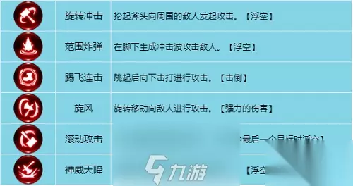 “旋风”伤害力很强,可以加点。 “神威天降”技能炫酷,很多人都会带,大斧头会给对手造成很强的伤害力,推荐养。 3.终极技