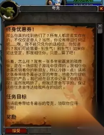 6、最后我们回去和矮人对话完成任务。 六、终身优惠券 1、完成矮人发布的任务后,在对面的地精NPC就可以接到最终奖励任务了。