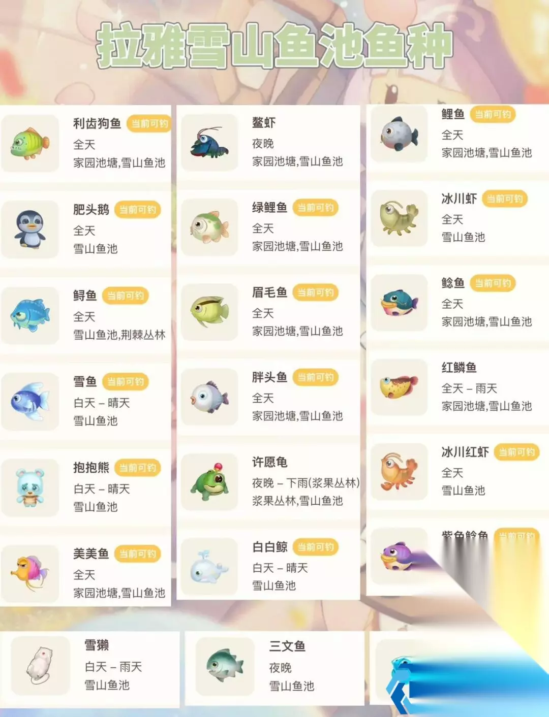 7、在拉雅雪山水域进行垂钓,耐心地等待,直到钓到白白鲸。 以上就是小编为大家带来的摩尔庄园白白鲸在哪钓的全部内容了,希望对大家有所帮助,更多内容可以关注233乐园。